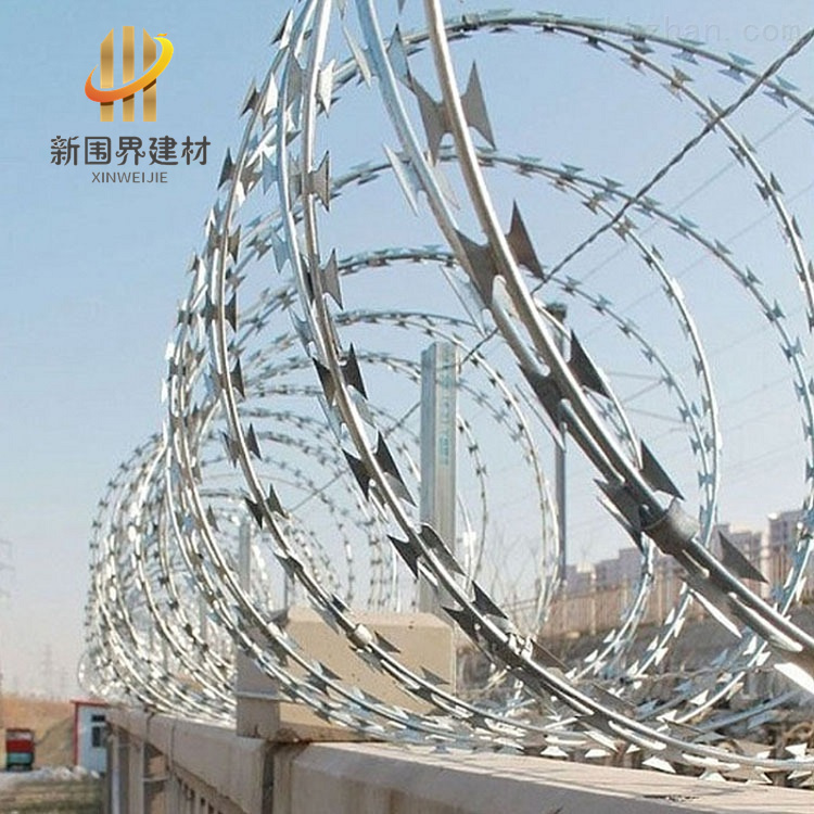标签: 围墙滚刀刺网、 蛇腹型刺丝滚笼、 围墙防盗防爬刺刀刺网、