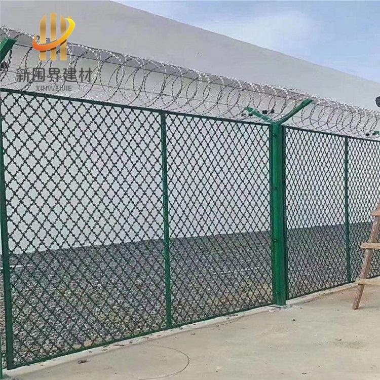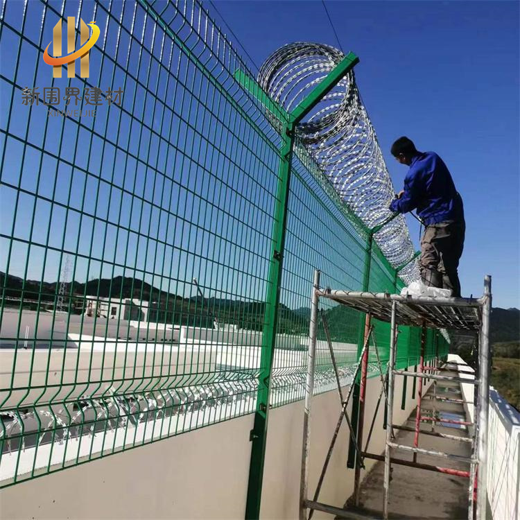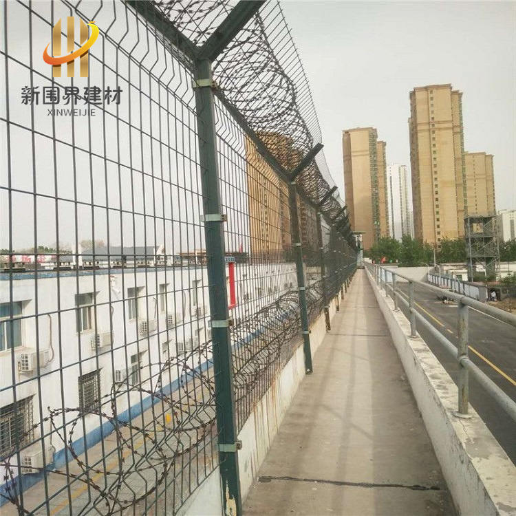 巡逻道隔离网主要用于隔离区域划分和安全防护,常见于监狱、机场、军事基地等需要安全管控的场所。 主要作用 : 安全防护:防止人员非法进入特定区域(如监狱巡逻道、机场隔离区),避免安全事故。区域划分:通过物理隔离实现不同功能区的划分,保障管理秩序。 防攀爬设计:采用刀片刺网、Y型立柱等结构,增强防攀爬能力。