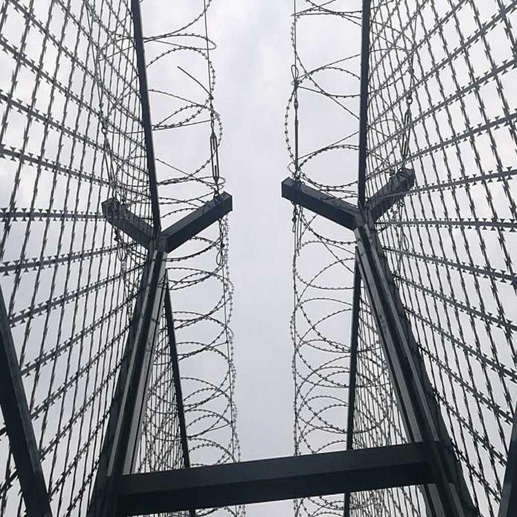狱墙隔离网、刀片刺网护栏、焊接刀刺钢网墙