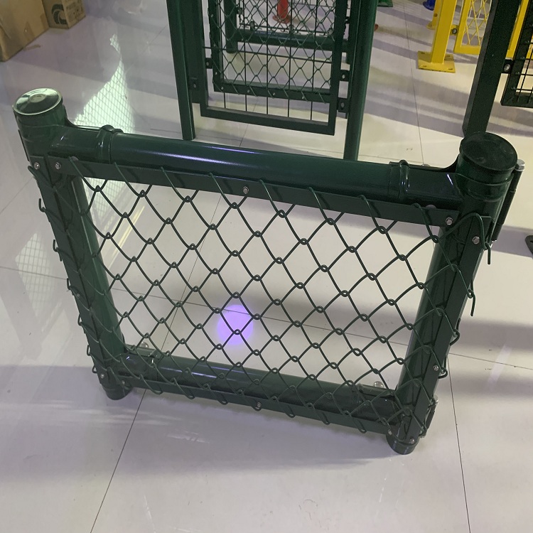 球场围网规格:1.包塑丝经:3.8mm;2.网孔:50mm X 50mm;3.尺寸:3000mm X 4000mm;4.立柱:60/2.5mm;5.横柱:48/2mm;